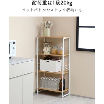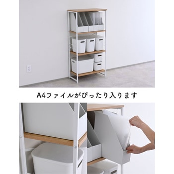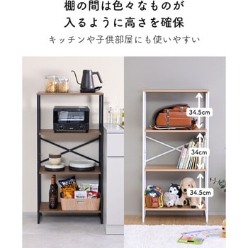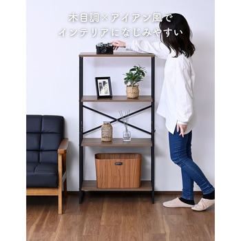 シンプルな木製棚板とアイアン風の4段ラックツヤのないマットなフレーム奥行はスリムな30cmA4ファイルや市販の収納ケースがしまえる棚間棚板は木の質感があってお手入れもかんたん傷や水に強いメラミンシートを採用ガタつきを抑えるアジャスターとクロスバー付き天板サイズ:幅59.5 奥行30cm棚板サイズ:幅56 奥行30cm棚板間内寸:上段、下段 幅56 奥行26 高さ34.5cm、中央 幅56 奥行26 高さ34cm床から棚板までの高さ:11.5cm