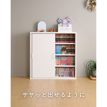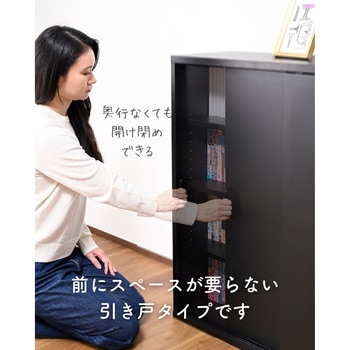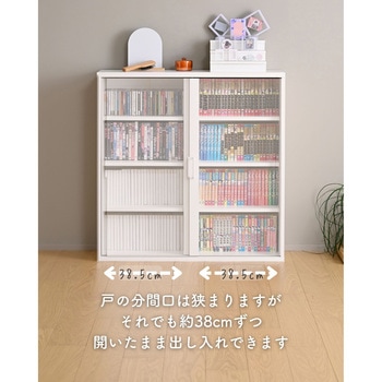 コミックをたくさん収納して「すっきり」隠せる扉付き本棚扉の開閉スペースを抑える引き戸式2台を上下に積み重ねも可能木ネジ式の転倒防止ベルトや、連結用の金具&ネジも付属間口:幅38.5 高さ87cm可動棚計6枚、3.2cm間隔、17段階棚板内寸目安:幅42 奥行22cm棚板間高さ:(手前/奥) 19.5、20.5、20.5、21cm ※棚は上から2段、9段、16段目に設置時背面化粧なし