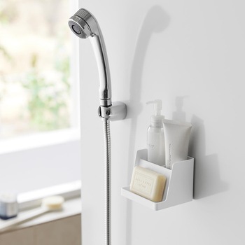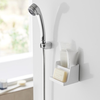 壁付けドライヤー&ヘアーアイロンホルダー タワー トレー付き ホワイト
