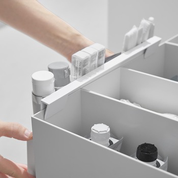 収納部(小)1つあたり:7×2.5×7.6、収納部(大):14.3×2.5×7.6(仕切りの高さ:5.9