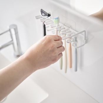 フィルムフックシリコーン歯ブラシホルダー タワー 5連 ホワイト