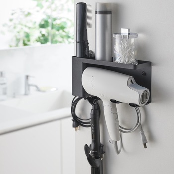 付属品石こうボードピンセット(取り付けピース×3 クギ×9 キャップ×3) 木ネジ×3 フック×4取付可能対象【石こうボードピン使用時】壁紙・布壁紙・ビニール壁紙貼りなどの石こうボード、薄ベニヤ【木ネジ使用時】柱・板壁(厚さ1cm以上)【プリント合板(裏側に水平にサンがある場所)・裏に下地材(間柱)が入っている壁材質本体:スチール(粉体塗装) クッション:シリコーンゴム色ブラック質量(g)1120耐荷重ドライヤーホルダー部:1kg トレー部:1kg ヘアーアイロン収納部:500g フック1つあたり:250g寸法(幅W×奥行D×高さH)(cm)25×8.5×13.5内寸(cm)【ドライヤー収納部】19.3×6.9×11.5【トレー部】19.1×8.1×1.4【ヘアーアイロン収納部】5.4×8.1×13.3内容量1個