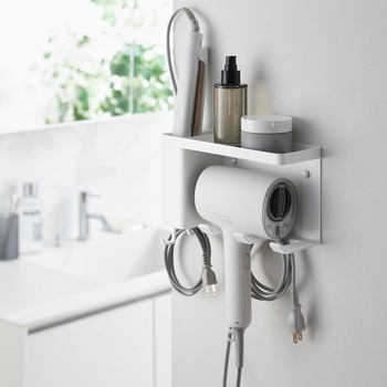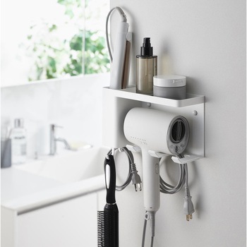 付属品石こうボードピンセット(取り付けピース×3 クギ×9 キャップ×3) 木ネジ×3 フック×4取付可能対象【石こうボードピン使用時】壁紙・布壁紙・ビニール壁紙貼りなどの石こうボード、薄ベニヤ【木ネジ使用時】柱・板壁(厚さ1cm以上)【プリント合板(裏側に水平にサンがある場所)・裏に下地材(間柱)が入っている壁材質本体:スチール(粉体塗装) クッション:シリコーンゴム色ホワイト質量(g)1120耐荷重ドライヤーホルダー部:1kg トレー部:1kg ヘアーアイロン収納部:500g フック1つあたり:250g寸法(幅W×奥行D×高さH)(cm)25×8.5×13.5内寸(cm)【ドライヤー収納部】19.3×6.9×11.5【トレー部】19.1×8.1×1.4【ヘアーアイロン収納部】5.4×8.1×13.3内容量1個