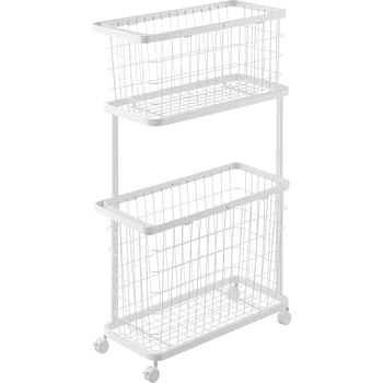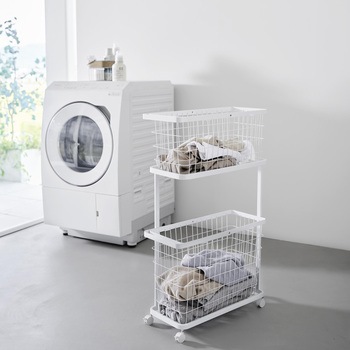 ランドリーワゴン+バスケット タワー スリム ホワイト