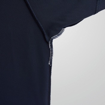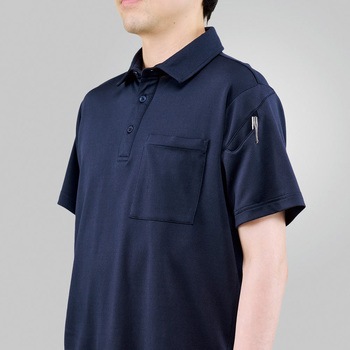吸汗速乾、放湿性、接触冷感に優れる二重網素材。ドライタッチ素材と消臭テープ仕様で不快感を軽減。ジャストサイズなポケットを胸と左袖に配置