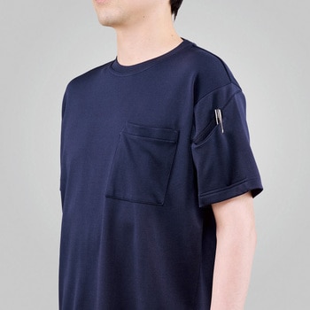 吸汗速乾、放湿性、接触冷感に優れる二重網素材。ドライタッチ素材と消臭テープ仕様で不快感を軽減。ジャストサイズなポケットを胸と左袖に配置