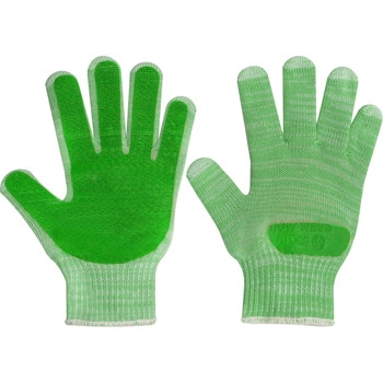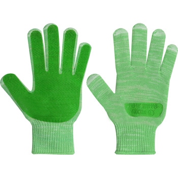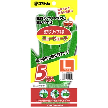 オリジナルの波状ゴムシートを貼った、グリップ力抜群のすべり止め手袋です。ソフトな手触りで物をつかみやすい。編み手袋の指先部分を強化しているので、破れにくい。天然ゴムのすべり止めなので、摩耗に強く、耐久性が抜群です。
