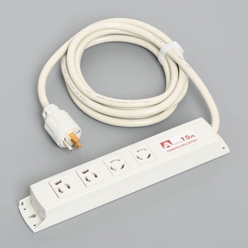 プラグを使わずにOAタップとOAタップを電線でつなぐ送り配線が可能で、VCT3.5mm?電線に対応する構造を持ち、内蔵コンセント・ケース材質に耐熱性・耐トラッキング性などを保有し、有害物質を含まない難燃(UL94 V-0)仕様のナイロン樹脂を採用しているハイスペックなOAタップ(電源タップ)です。4つのさし込み口付き、接地形2P 15Aの定格で、合計15Aまで使用できます。