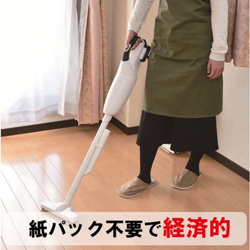 紙パック不要で経済的。重量1.25kg(バッテリー込み)と軽いので、車内の掃除や棚の上の掃除に最適。標準/強の2段階に運転切替。約90分の充電時間で連続最長約24分(標準時)使える。バッテリーは電池残量がひと目で分かる残容量表示ランプ付き。隙間ノズルで細かい場所まで掃除できる。本体にはストラップ付でひっかけて収納可能。ダストボックスは丸洗い可能。