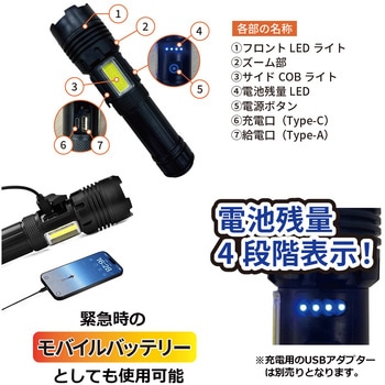 電池残量4段階表示。サイドライトでハンズフリー作業が可能!