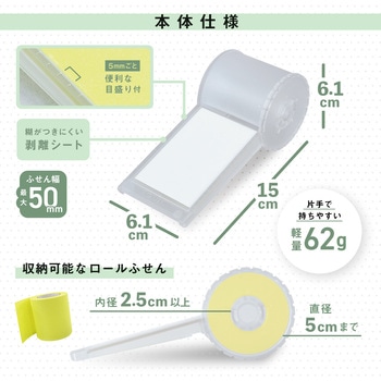 ※注意:ロールふせんは付属しておりません。最大ふせん幅:50mm。