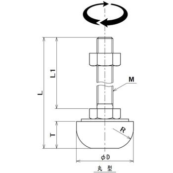 ゴム台座のアジャスタ―ボルト、平形状と丸形状の2種類です。