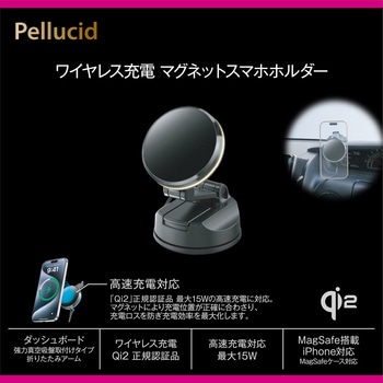 ワイヤレス充電スマホホルダー。MagSafe搭載iPhone対応。Qi2正規認証品。最大15Wの急速充電に対応。スマホへの過充電を防止します(過電流保護/過電圧保護/過熱保護)。ワイヤレス充電ON/OFF切替タッチセンサー付き。ワイヤレス充電LED付。お好みの位置に合わせて角度調整が出来るネジ固定不要折りたたみアーム。ホルダーの角度を自由に調整出来ます。吸盤は水洗いで吸着力が復活します。