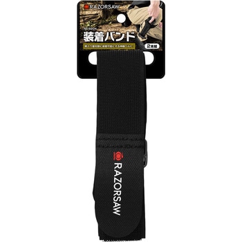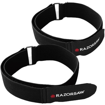 RAZORSAW(レザーソー)の商品「SHINKA」に取り付けることが出来るバンド。のこぎりを腰にぶら下げたり、腰袋に入れるという持ち運び方ではなく、脚に装着するという持ち運び方。これまでの考えを進化させた持ち運び方は、より快適な作業につながる。