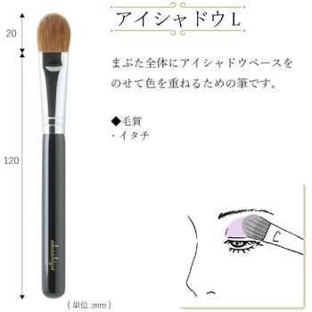 奈良筆の歴史と伝統につちかわれた匠の技と心を継承する筆専門メーカー「あかしや」の化粧筆。優しい肌触りで自然なメイクに仕上がります。 【あかしや化粧筆 アイシャドウL】まぶた全体にアイシャドウベースをのせて色を重ねるための筆です。