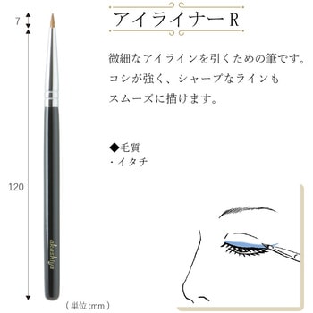 奈良筆の歴史と伝統につちかわれた匠の技と心を継承する筆専門メーカー「あかしや」の化粧筆。優しい肌触りで自然なメイクに仕上がります。 【あかしや化粧筆 アイライナーR】微細なアイラインを引くための筆です。コシが強く、シャープなラインもスムーズに描けます。