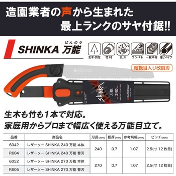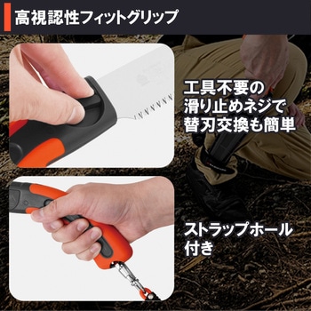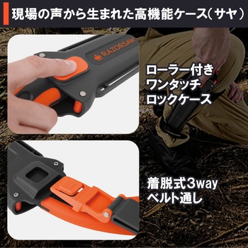 生木も竹も1本で対応。家庭用からプロまで幅広く使える万能目立て。ローラー付きワンタッチロックケースで鋸の出し入れが簡単になり、着脱式3wayベルト通しなのでサヤを装着する方法も様々に。工具不要の滑り止めネジにより替刃交換も簡単で、用途に合わせて選べる高性能ブレード。ストラップホール付き高視認性フィットグリップにより、握りやすく無くしにくい。