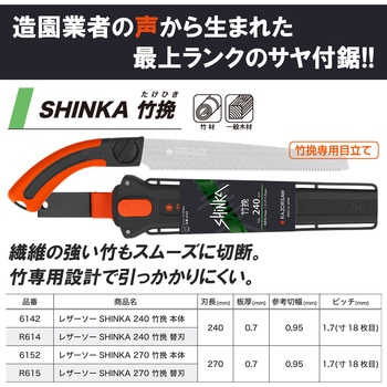 繊維の強い竹もスムーズに切断。竹専用設計で引っかかりにくい。ローラー付きワンタッチロックケースで鋸の出し入れが簡単になり、着脱式3wayベルト通しなのでサヤを装着する方法も様々に。工具不要の滑り止めネジにより替刃交換も簡単で、用途に合わせて選べる高性能ブレード。ストラップホール付き高視認性フィットグリップにより、握りやすく無くしにくい。