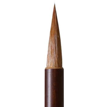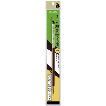 この筆は、中国北方のイタチ毛を使い、なめらかさ、ねばり、弾力等を工夫していますので仮名作品用としてお使いください。仮名文字に必要な鋭く強い線、温かく柔らかな線が合わせて表現できます。
