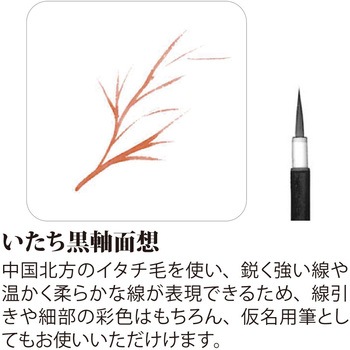 中国北方のイタチ毛を使い、鋭く強い線や暖かく柔らかな線が表現できるため、線引きや細部の彩色はもちろん、仮名用筆としてもお使いいただけけます。