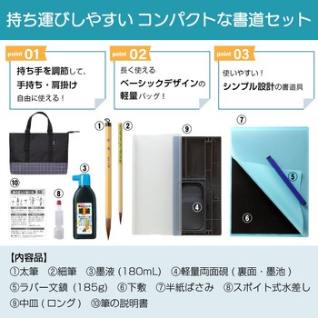 使いやすいシンプル設計の書道具!長く使えるベーシックデザインのバッグ!持ち手の長さが変えられる!コンパクトで超軽量!