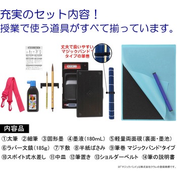 ★書写授業に最適!全てそろった充実のセット内容!★デザイナーが手掛けたスタイリッシュバッグ!・さわり心地ふかふか!クッション性のある軽量素材!・書道具やペットボトルが縦にも入る大容量。・ショルダーベルトで2ウェイバッグに。・ダブルファスナーで開けやすい。・ネームラベル付き(個人情報に配慮してバッグの内側に縫い付け)。