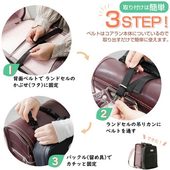 ランドセルに取り付け可能で、両手が空くからスッキリらくらく。