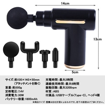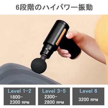 コンパクトなハンディサイズでハイパワー!回転数1800~3200RPMで、筋肉の深層部まで振動が届き、凝り固まった筋肉をほぐし血流改善、コリや痛みを緩和します。6段階の振動と4つのアタッチメントで、全身のボディメンテンナンスに対応します。1800mAhの大容量バッテリーで最大6時間連続使用が可能です。