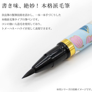 書き味、絶妙!本格派毛筆。奈良筆の製筆技術を活かし、一本一本手づくりした本格派毛筆タイプの筆ペンです。コシの強い人造毛を使用しており、トメ・ハネ・ハライが美しく表現できます。 ※水性染料インク
