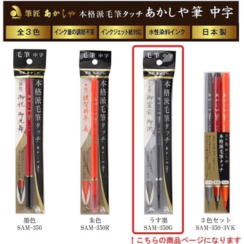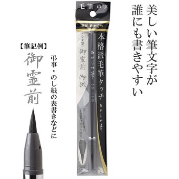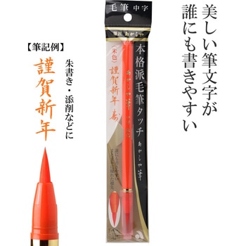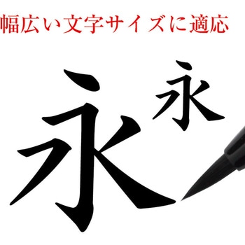 弾力に富んだ特殊繊維を使用し、まとまりに優れた誰にも書きやすい毛筆ペンです。本物の筆と同じ毛組みで手づくりしており、本格派の毛筆タッチで、穂先がきき細くも太くも書ける万能な中字タイプです。インク量が一定に出る中綿式で安定した書きごこちです。 ※水性染料インク
