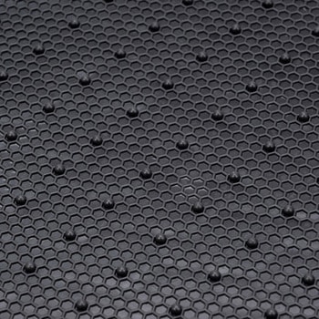 表面には深いハニカム形状の溝が設けられており、水や汚れの拡散を確実に防ぎフロアカーペットを保護します。