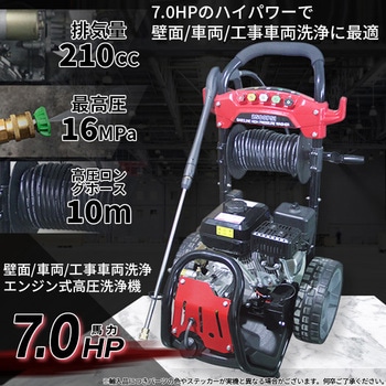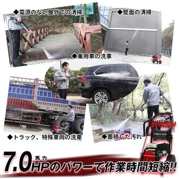 ◆7.0HPエンジン式高圧洗浄機。◆清掃業者や専門業者が使用するタイプで強力噴射が可能!◆移動のしやすさも考慮し、ノーパンクタイヤ付き!自動車の洗浄・壁面の洗浄に、花壇・庭木・畑の散水に。重機や耕運機の泥落としににもおすすめです。ホースも洗浄ガンも収納し、移動もラクラクです。
