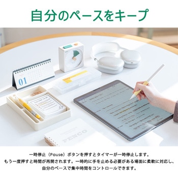一時的に手を止める必要がある場面に柔軟に対応し、自分のペースで集中時間をコントロールできます。