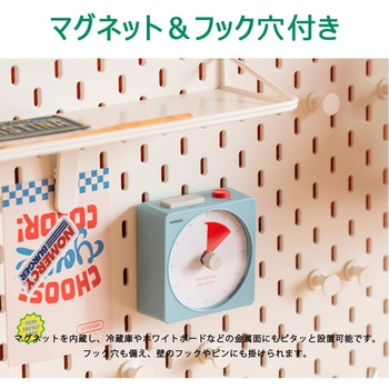 フック穴も備え、壁のフックやピンにも掛けられます。キッチンタイマーとしても便利に使えます。