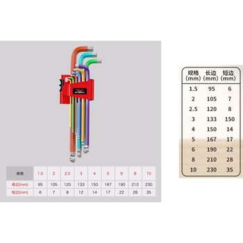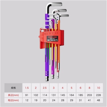 カラーでサイズの区別がしやすく、六角穴付きボルト・ねじの締付け、緩め作業に使用できる六角レンチのセットです。基本材質はS2合金鋼を採用し、より耐久性とトルク伝達性に優れています。※本製品には防錆・潤滑用の油が若干塗布されています。