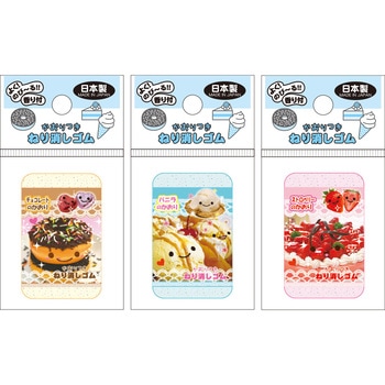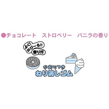 スイーツモチーフの香りのねり消しゴム。香りはチョコレート、バニラ、ストロベリーがあります。