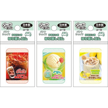 ドリンクモチーフの香りのねり消しゴム。香りはコーラ、メロン、バナナがあります。