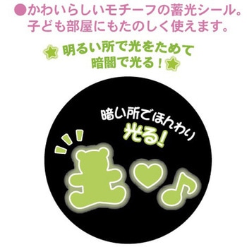 お子様にも親しみやすいかわいいモチーフ。ドアノブやスイッチプレート周り、リモコン等に貼付すれば消灯後の暗闇で目印になります。