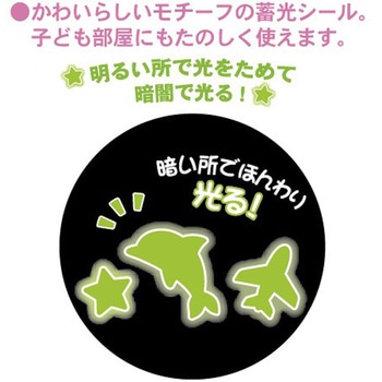 光を吸収して暗闇で光る夜光タイプのシールです。