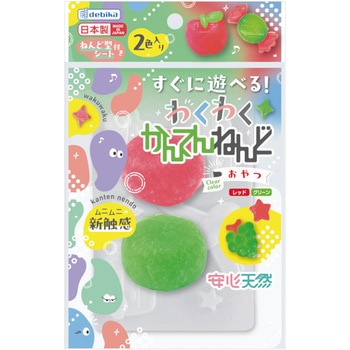 寒天が素材の安心・安全なねんど。ねんど型シート付。防腐剤・防カビ剤を使用していない寒天を含む食品素材から作っているので安心安全です。手でこねるうちに柔らかくなりよく伸びてやみつきになる触感です。保水性に優れて乾きにくいのでお子様が自分のペースで遊べます。寒天は、アレルギー反応の起こりにくい原料で紅藻類という種類の海藻を煮込み冷やし固めてゼリー状になった「ところてん」から水分を取り除いて乾燥させたものです。やわらかく、ねんどが取り出しやすいPE製のねんど型シートが付いてます。
