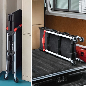 本製品は軽量かつ省スペースで収納できるため、出張先の作業現場への持ち運びに便利。