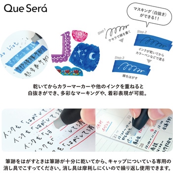 【世界初「はがして消せるボールペン・ケセラ」】世界初、大粒子・低粘度顔料インクの「消せるボールペン」。くっきり発色、滑らか書き味の特性はそのままに「間違えたらはがして消せる」新発想のボールペンです。【「温度変化に影響されない」筆記線が消せる理由】紙にインクが乗っている=糊のような状態に。専用の消し具で「インクをはがす」完全に消す事ができます。 【マスキング(白抜き)できるボールペン】インクをはがせる特性でマスキングが可能に。マーカーや他のインクを重ねて消し具ではがすと白抜きができます。
