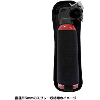 熊よけスプレーの熊一目散に使用できる携帯用ケースです。裏面の上部には、カラビナ等の取付バントつきで使い勝手のいい仕様です。適合サイズはボトル直径55mm以下程度であれば問題なく使用可能です。