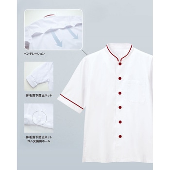 HACCP支援の体毛落下防止ネット付きで、食品工場や給食現場でも安心。さらに、ゴム交換用ホール付きでお手入れもラクです。