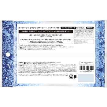 24時間、肌快適ケア。いつでもどこでもずーっと快適な肌を願う人へ。冷感ー3.2℃*。超クールでひんやり爽快!汗もニオイも全身すっきり。持続型クールエッセンス配合。汗臭・ストレス臭・ベタつき・汚れ・ニオイ菌まで拭き消す!白くならずにさらさら肌続く。*2往復拭いた直後の肌表面温度。クールタイプ、無香性