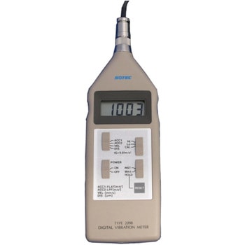 仕様●周波数範囲及び、測定範囲:加速度(ACC1)10~6000Hz、加速度(ACC2)10~300Hz、Hi0.5~199.9m/s2、Lo0.05~19.99m/s2、速 度 (VEL) 10~1000Hz、Hi0.5~199.9mm/s、Lo0.05~19.99mm/s、変 位 (DIS) 10~1000Hz、Hi10~1999μm、Lo1~199.9μm●時定数:SLOW(1.0秒)●補助表示:オーバースケール/最大値を越えると[OVER]を表示、電池電圧/約2.0V以下で[BATT]を表示、校正信号/外部機器校正用20Hz正弦波電源(V)単三形乾電池(SUM-3)2本(AC100用ACアダプタ/オプション)出力AC(交流)2Vrms(最大指示)、DC(直流)2V (最大指示)、負荷抵抗10kΩ以上連続使用時間約38時間( アルカリ乾電池使用時 )指示方式加速度・速度 片振幅(1/2P-P)、変位 両振幅(P-P)測定モード瞬時値および最大値ホールド検波方式実効値検波デジタル表示3・1/2桁ピックアップアンプ内蔵せん断型 TYPE 2505、感度:10mV/m・s-2、共振周波数:20kHz表示周期3回/1秒