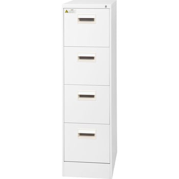 A4収納に適した4段タイプのファイリングキャビネットになります。1箇所のロックで全ての引出しが同時に施錠できるオールロック機構を採用しています。引き出しはラッチ付になります。樹脂仕切板が格段3枚付となっております。連結用ハーフパンチ加工を施しております(左右・背面)