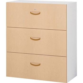 収納物のさまざまな用途に合わせた家具を奥行きサイズ450mmの木目扉タイプの収納庫になります。錠前は赤と青の表示錠。引出しなので、見下ろして楽に利用できます。ラッチ機能付で自然に開いたり、飛び出しません。下置き専用になります。(ベース別売り)