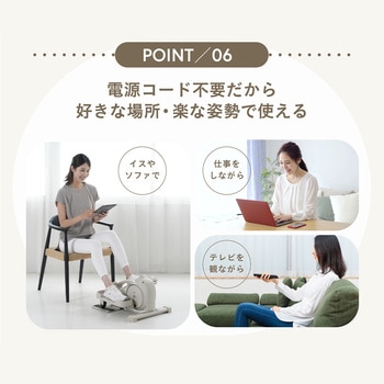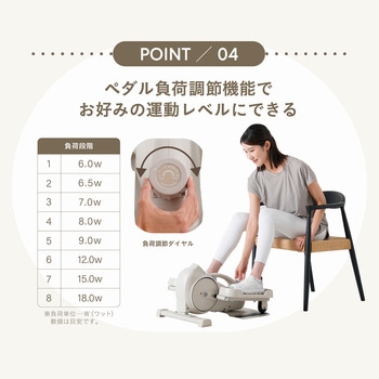 誰でも安全に3wayの運動ができる足腰に負担をかけず、効果的な有酸素運動細かな負荷調節が可能運動の成果をチェックできる表示メーター搭載ハンドル付きで持ち運びラクラク大きく運動しやすいワイドペダル静音&関節に優しいマグネット負荷方式電源コード不要だから、好きな場所・楽な姿勢で使用可能使用制限体重:90kg電源:単4乾電池×1本連続使用時間:30分ペダル負荷調整:8段階