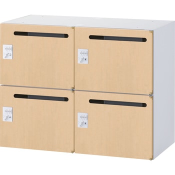 収納物のさまざまな用途に合わせた家具を奥行きサイズ450mmの木目扉タイプの収納庫になります。錠前はシリンダー錠。4人用のメールボックスなので多様な働き方に対応出来る配線機能を有した個人収納ボックスになります。オプションのノートPCスタンドを使用すればノートPCも省スペースで収納出来ます。上下兼用になります。